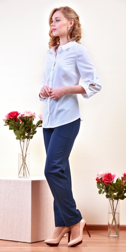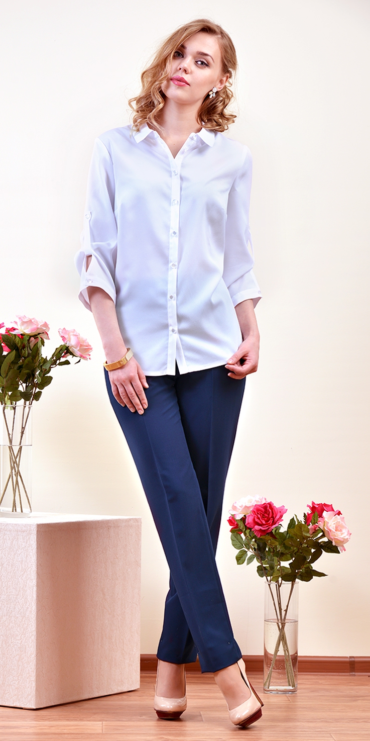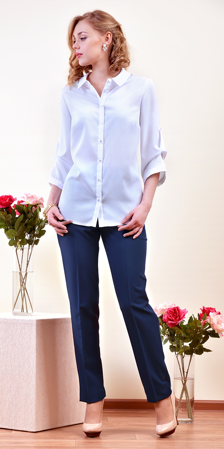 Классическая блузка из крепа с воротником и планкой.