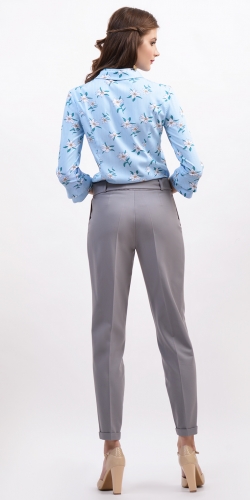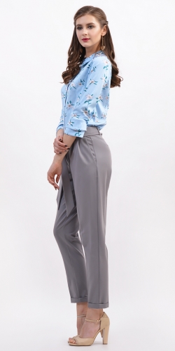 Легкая блузка полуприлегающего с интересным воротником. Рукава 3/4 оформлены двойным манжетом. По переду вытачки, на спинке рельефные швы. Застежка по планке на пуговицы.