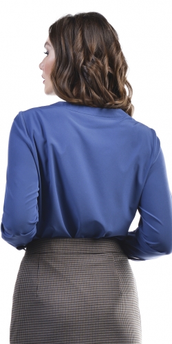 Блузка прямого силуэта из легкой ткани. Вырез горловины округлой формы, с двойной обтачкой и застеж