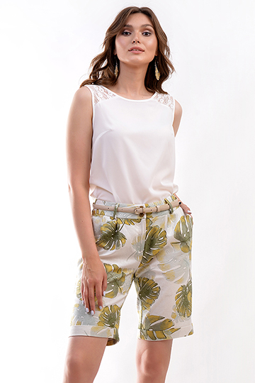 Блузка полуприлегающего силуэта из легкой ткани с напечатанным принтом по переду. Вырез горловины ок