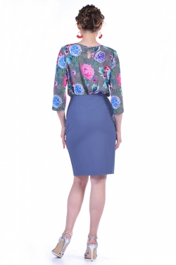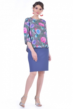 Лаконичная блузка прямого силуэта из принтованной ткани. Вырез горловины округлый. Рукав длиной 3/4 , с фигурным низом. Спинка длиннее переда на 6 см. На спинке «капелька» и застежка на пуговицу.