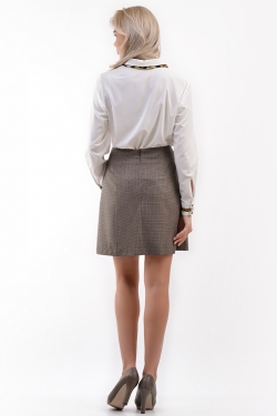 Блузка прямого силуэта из легкой ткани с контрастной отделкой. Оригинальный двойной воротник. Рукав длинный на широкой манжете с кантом. Застежка по переду на пуговицы.