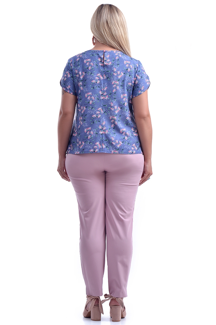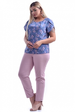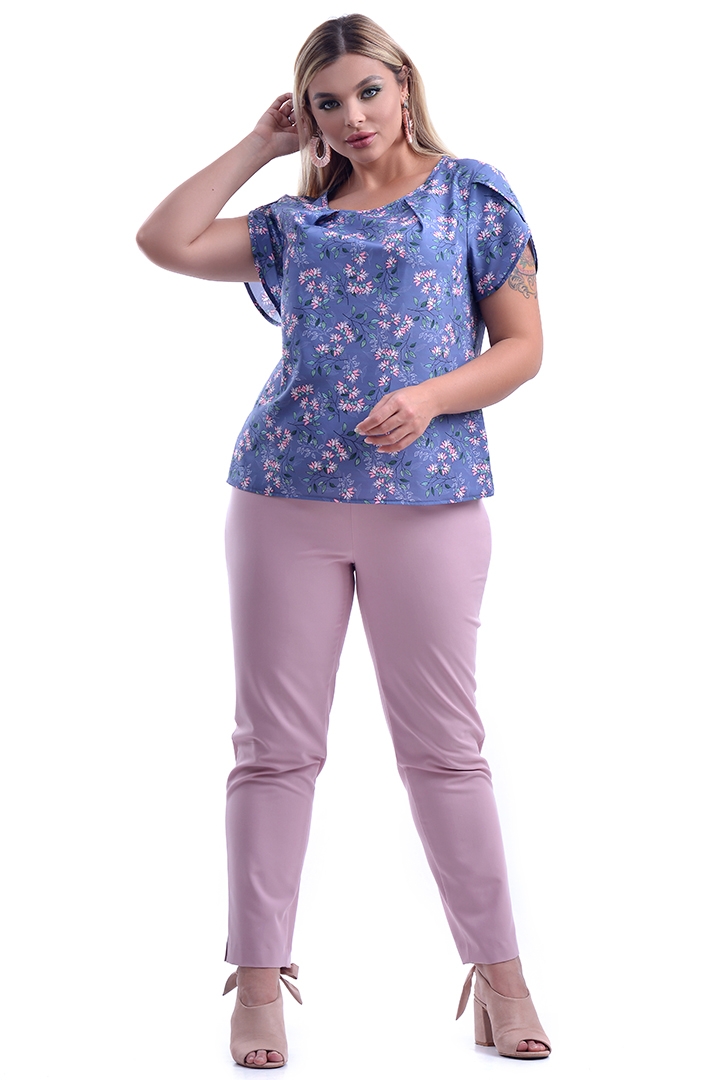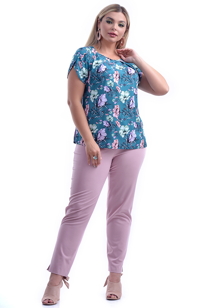 показать все описаниеБлузка из поливискозной ткани с интересным принтом. Круглый вырез горловины оформлен 2-мя защипами, а короткие рукава выполнены из 2-х деталей в форме лепестков. По бокам блузки небольшие разрезы, по спинке шов и застежка на пуговку. Рекомендуем носить с брюками или юбкой.