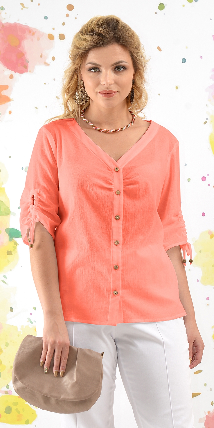 Легкая летняя блузка из марлевки свободного силуэта. Детали: планка с застежкой на деревянные пуговицы, по низу рукава - сборка на кулиску, шнурок из основной ткани украшен бусинами.