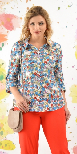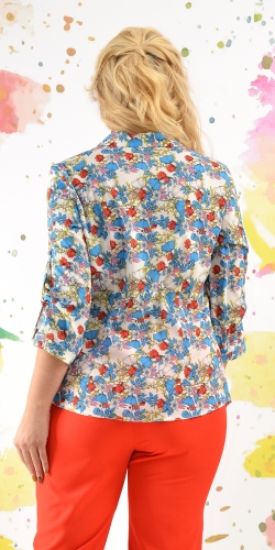 Изысканная блузка полуприлегающего силуэта с ярким цветочным принтом. Отлично подойдет для создания как делового, так и повседневного образа. Детали: классический воротник на стойке, планка с застежкой на пуговицы, рукав с манжетой и легкой сборкой на пату.