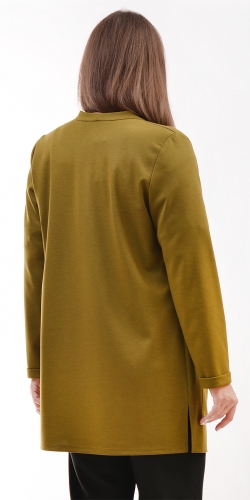 Вырез V-образной формы. Рукав со сборкой по низу , длиной 3/4 на манжете. По спинке кокетка. Без застежки.