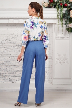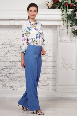 Широкие расклешенные брюки со стрелкой из костюмного льна. Брюки на поясе, с высокой посадкой. Застежка в боковом шве на молнию и пуговицу.