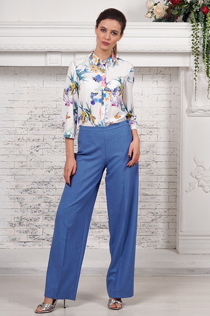 Блузка прямого силуэта с цветочным принтом. Воротник рубашечного типа. Рукав длиной 3/4 на манжете. Застежка по переду- планка с пуговицами.