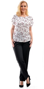 Легкая блузка из вискозы с круглым вырезом горловины и спущенным плечом, длиной чуть ниже талии - оптимальный вариант для жаркого лета. Интерес вызывает застежка на пуговицы вдоль всей спинки.