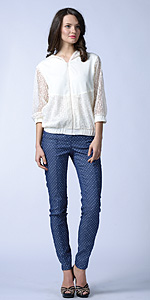 Прямые брюки с застроченной стрелкой из сатин хлопка. Брюки на поясе, со шлевками. Застежка на молнию и пуговицу.