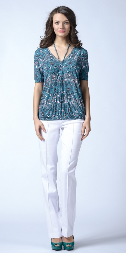 Прямые брюки с застроченной стрелкой из сатин хлопка. Брюки на поясе, со шлевками. Застежка на молнию и пуговицу.