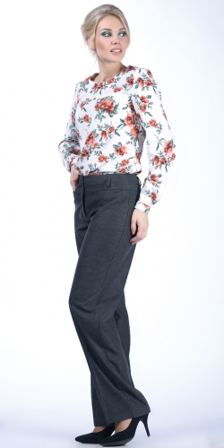 показать все описаниеПрямые брюки из костюмной ткани с добавлением вискозы. Брюки на широком поясе (5,5 см), застежка на 2 пуговицы и молнию. По бокам карманы.