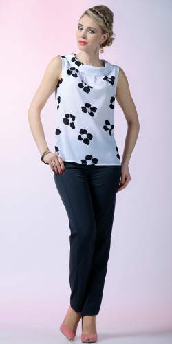 Зауженные брюки из костюмной ткани с отрезной боковой частью. В передних швах карманы. Застежка по переду на молнию и крючки.
