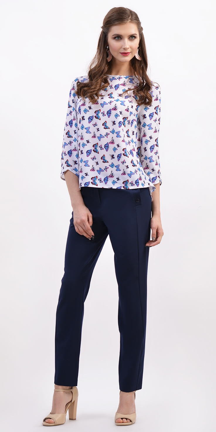 Зауженные брюки из костюмной ткани с отрезной боковой частью. В передних швах карманы. Застежка по п