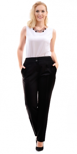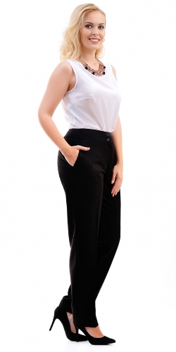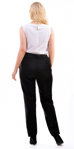 показать все описаниеПрямые брюки из костюмной ткани с добавлением вискозы. Брюки на широком поясе (5,5 см), застежка на 2 пуговицы и молнию. По бокам карманы.