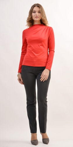 Брюки из костюмной ткани с карманами, зауженные книзу. Вход в карман декоративно отстрочен. Застежка спереди на молнию.