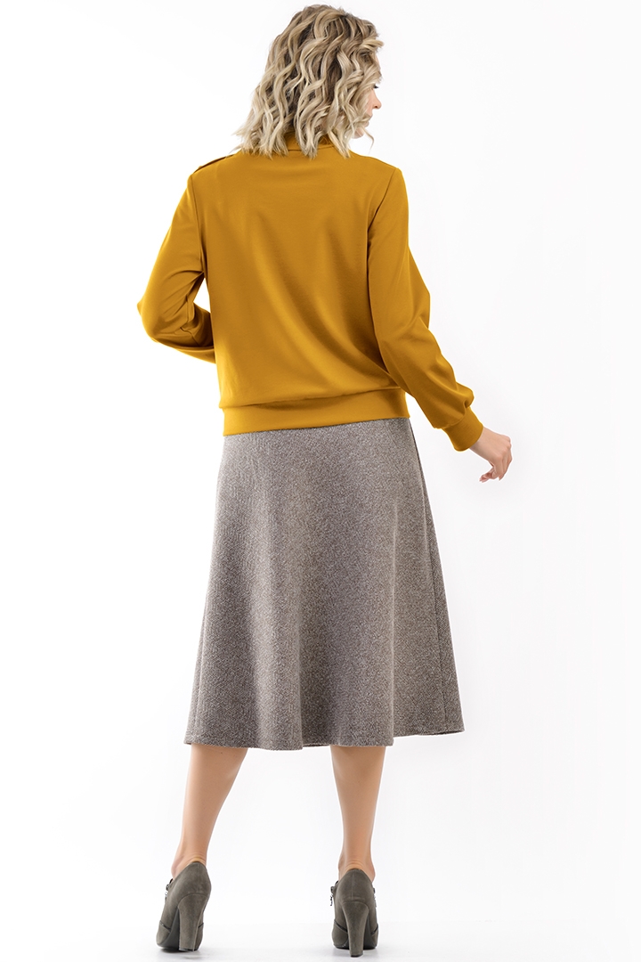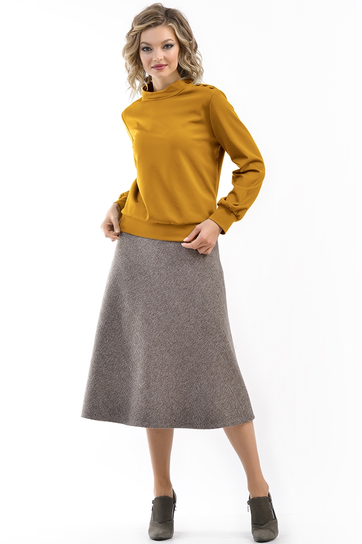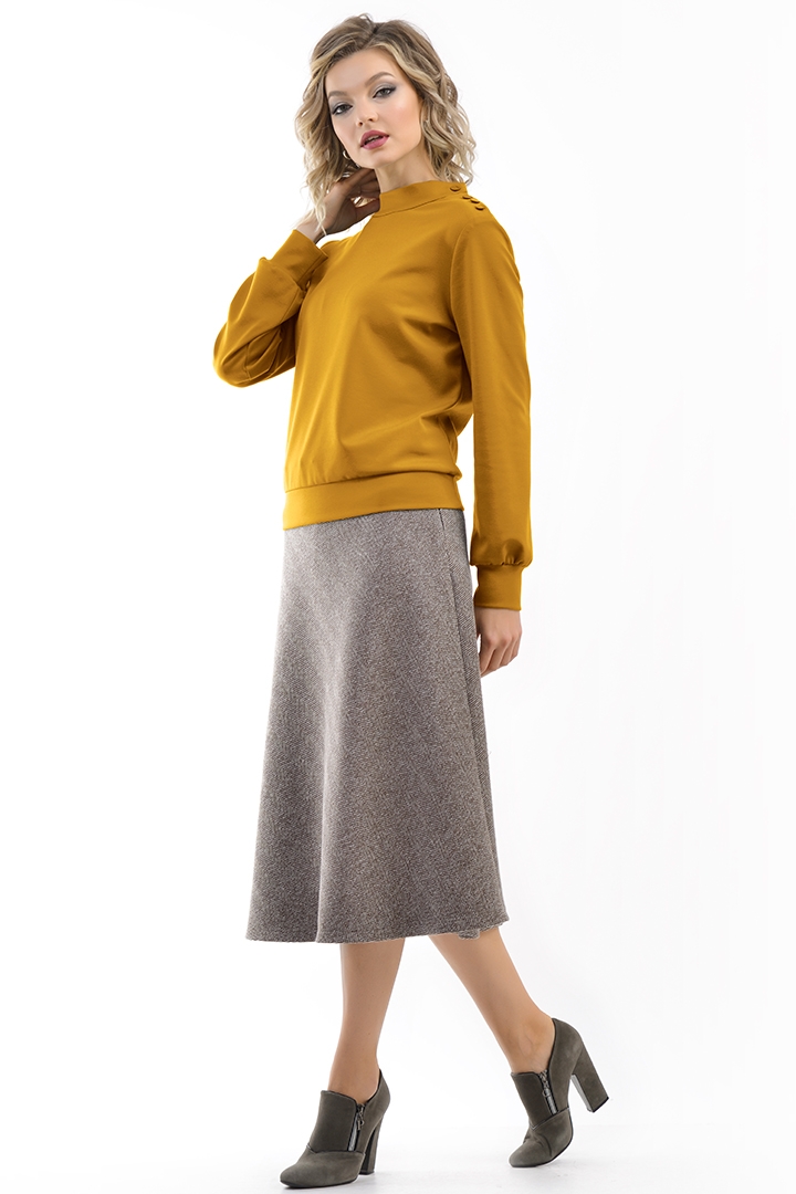 Комфортный джемпер из гладкого вискозного трикотажа с длинными рукавам на манжетах. Горловина оформлена в виде стойки. Низ изделия на поясе Застежка джемпера по левому плечу и горловине на 4 декоративные пуговицы.