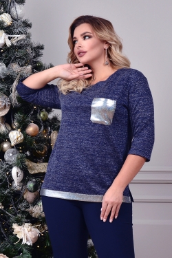 Джемпер прямого силуэта из мягкого меланжевого трикотажа с люрексом, с накладным карманом, блестящей