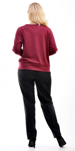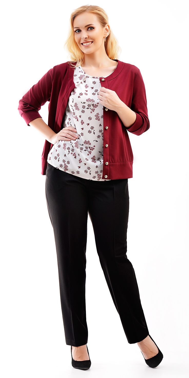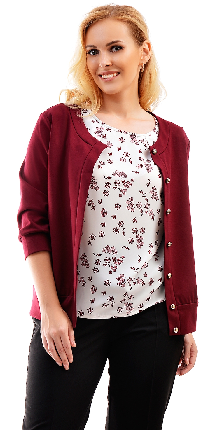 Кардиган из трикотажа прямого силуэта. Рукава 3/4 на манжетах. По низу изделия широкий пояс. Застежка по планке на пуговицы.