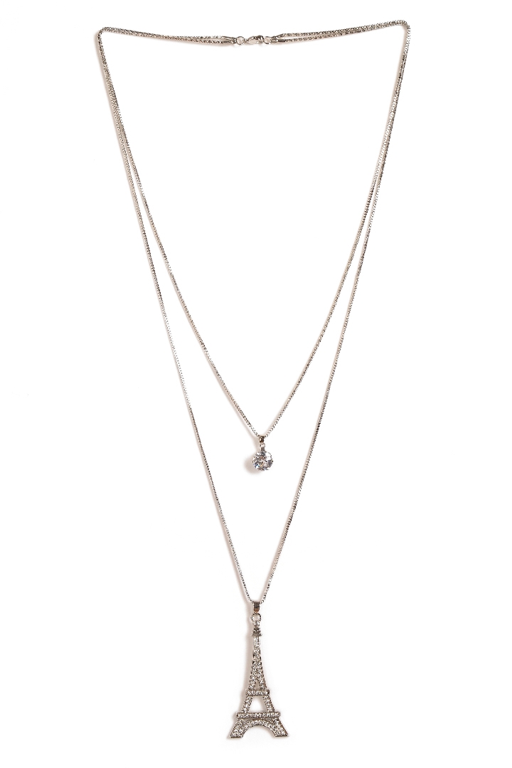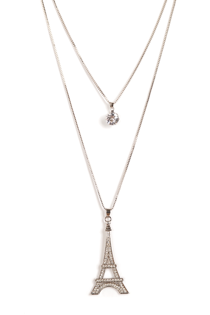 Яркий акцент в вашем образе - элегантная подвеска в виде Эйфелевой башни на цепочке. Украшена стразами.