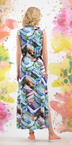 Необычный принт в виде коллажа из фотографий природных пейзажей придает этому сарафану неповторимый шик и стиль. В ярком сарафане такой стильной расцветки вы точно не останетесь незамеченными.