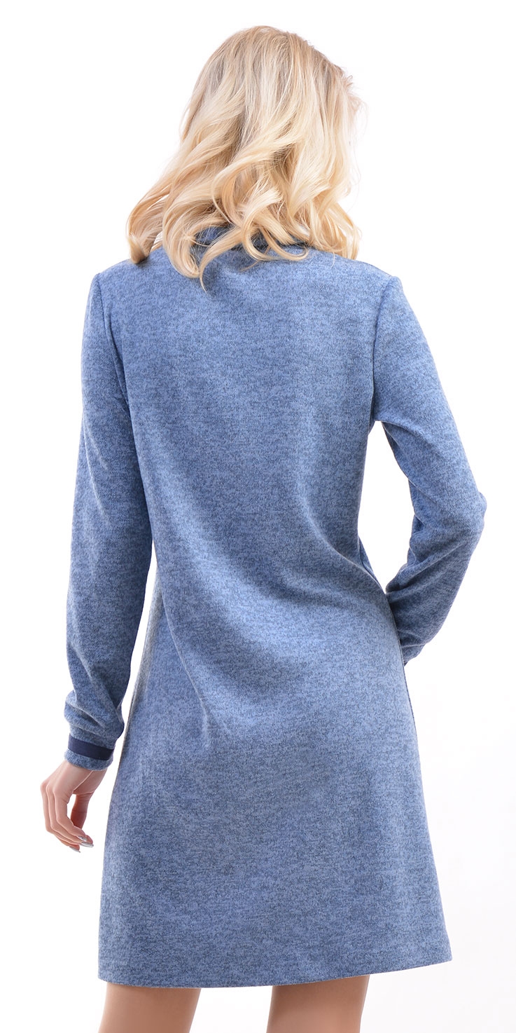 Платье прямого силуэта из трикотажа, с двойным воротником стойкой, длинными рукавами на манжетах, от