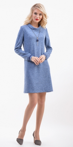 показать все описаниеПлатье прямого силуэта из трикотажа, с двойным воротником стойкой, длинными рукавами на манжетах, отделанных тесьмой из замши.