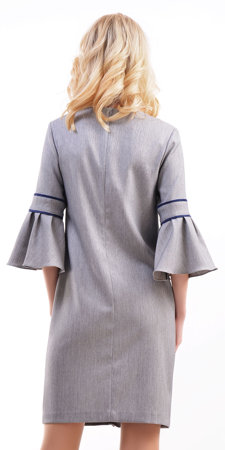 Рукава 3/4. с воланами и замшевой отделкой. Застежка на спинке на длинную молнию.