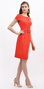 показать все описаниеПлатье прилегающего силуэта, с запахом из крепового трикотажа. Рукав длинный из гипюра, оформлен воланом из шифона, переходящим на перед. Вырез по переду V-образный, на спинке - фигурной формы. На спинке средний шов, щлица, застежка на длинную потайную молнию и пуговицу.