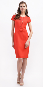показать все описаниеПлатье прилегающего силуэта, с запахом из крепового трикотажа. Рукав длинный из гипюра, оформлен воланом из шифона, переходящим на перед. Вырез по переду V-образный, на спинке - фигурной формы. На спинке средний шов, щлица, застежка на длинную потайную молнию и пуговицу.