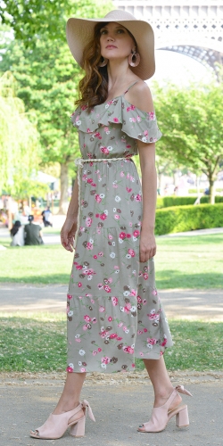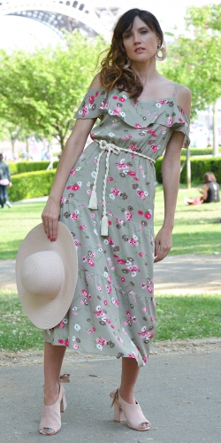 А наш сарафан на тонких лямках с открытыми плечами, воланами и плетеным поясом - настоящее творение дизайнеров. Он отлично будет смотреться на загорелой коже.