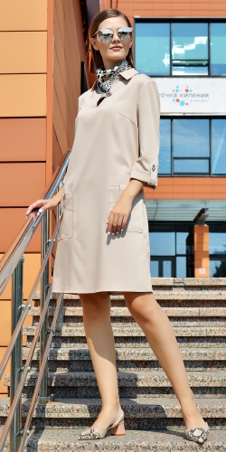 показать все описаниеПлатье А-силуэта из тонкой джинсовой ткани. Воротник рубашечного типа, вырез V-образной формы. Рукав длиной 3/4 с патой и отворотом по низу. По переду накладные карманы. Без застежки.