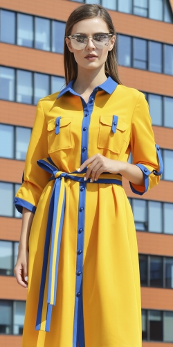 Платье-рубашка А-силуэта из костюмной ткани с контрастной отделкой. Воротник рубашечного типа, рукав