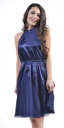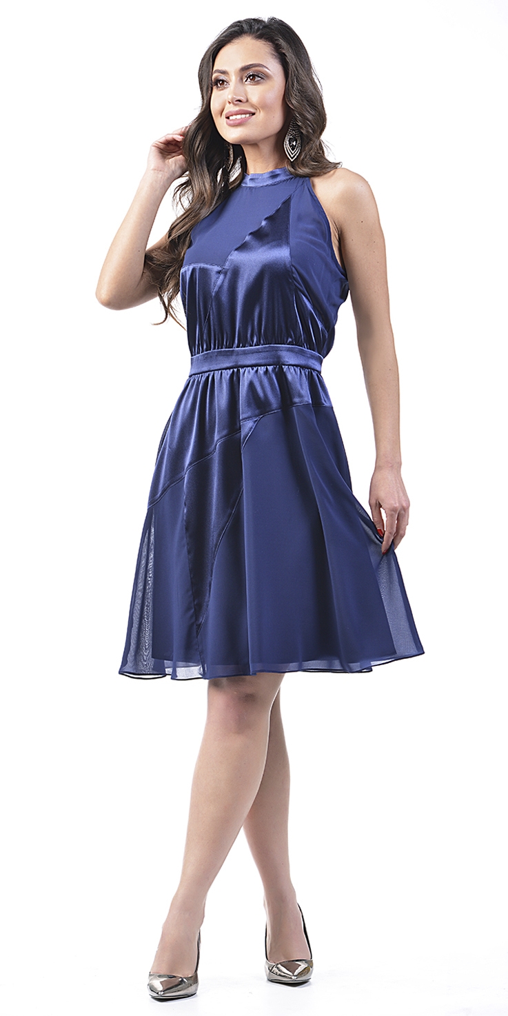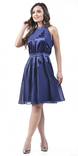 Легкое платье из воздушного шифона со вставками из атласа. Американская пройма, пояс на талии, длина выше колен подчеркнет вашу красоту.