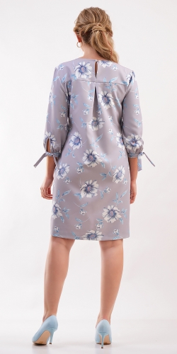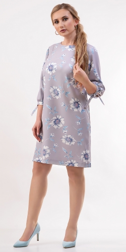 показать все описаниеПлатье полуприлегающего силуэта, слегка расклешенное к низу, из крепа с нежным цветочным принтом. Вырез округлой формы. Рукав длиной 3/4 со сборкой по низу, на узкой манжете переходящей в завязки. По спинке кокетка, «капелька» и застежка на пуговицу.