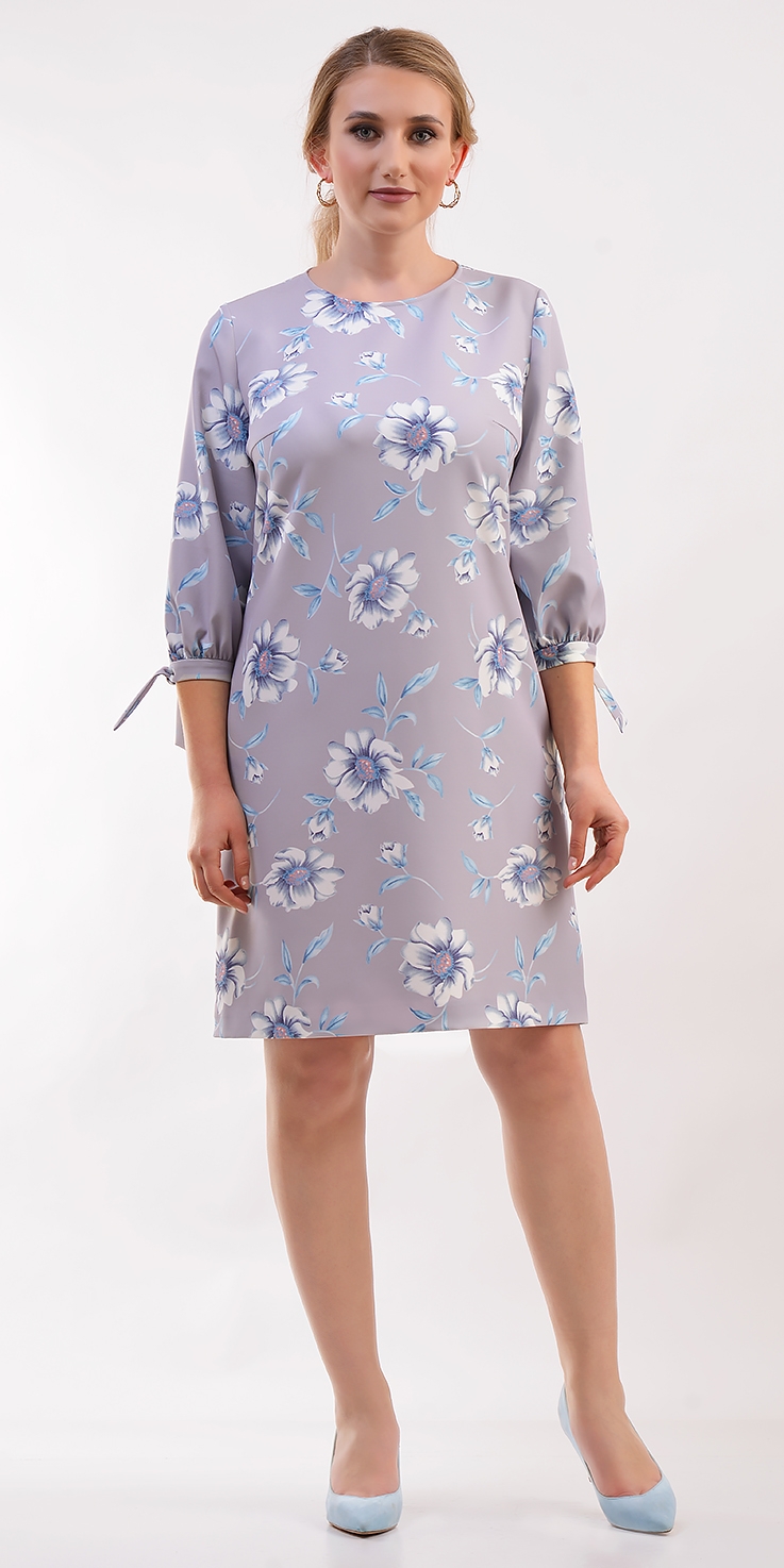 Платье полуприлегающего силуэта, слегка расклешенное к низу, из крепа с нежным цветочным принтом. Вы