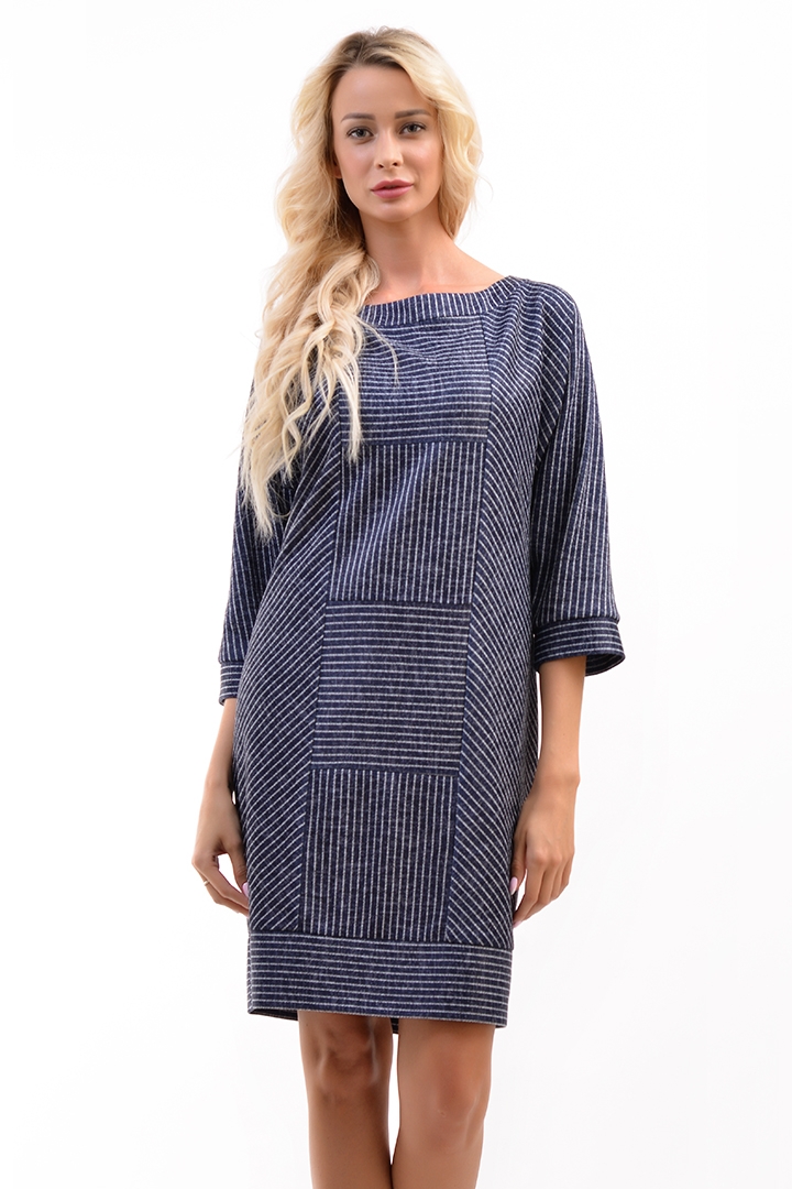 Молодёжное платье из трикотажа в полоску О-силуэта, с цельнокроенным рукавом 3/4. Круглый вырез гор