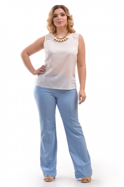 Топ из тонкой креповой ткани с круглым вырезом горловины и кружевными кокетками по переду. На спинке средний шов, в боковых швах разрезы.