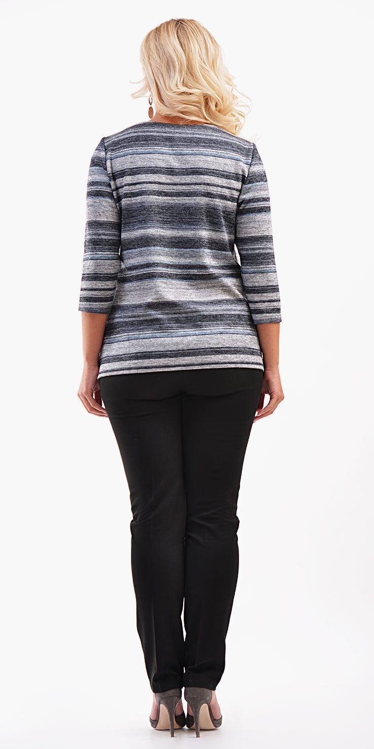 показать все описаниеТуника из трикотажа с люрексом, рукавами 3/4, круглым вырезом горловины и ассиметричным низом. Без застежки.