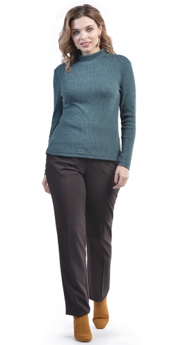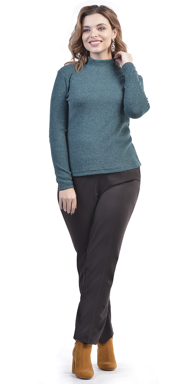 Комфортная водолазка из вискозного трикотажа-лапши с длинными рукавами и высокой стойкой.