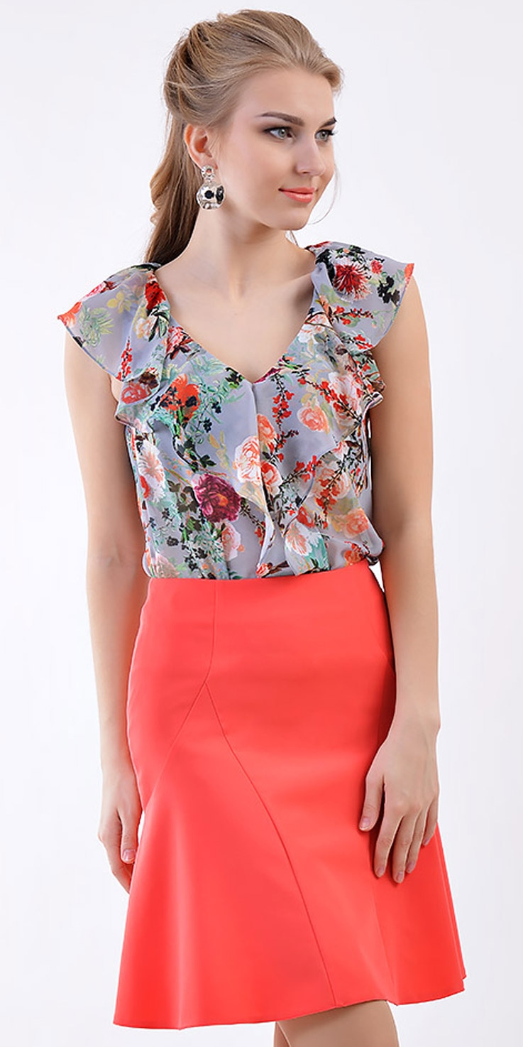 Юбка трапециевидного силуэта с фигурными рельефными швами по спинке и переду. Застежка по спинке на потайную молнию.