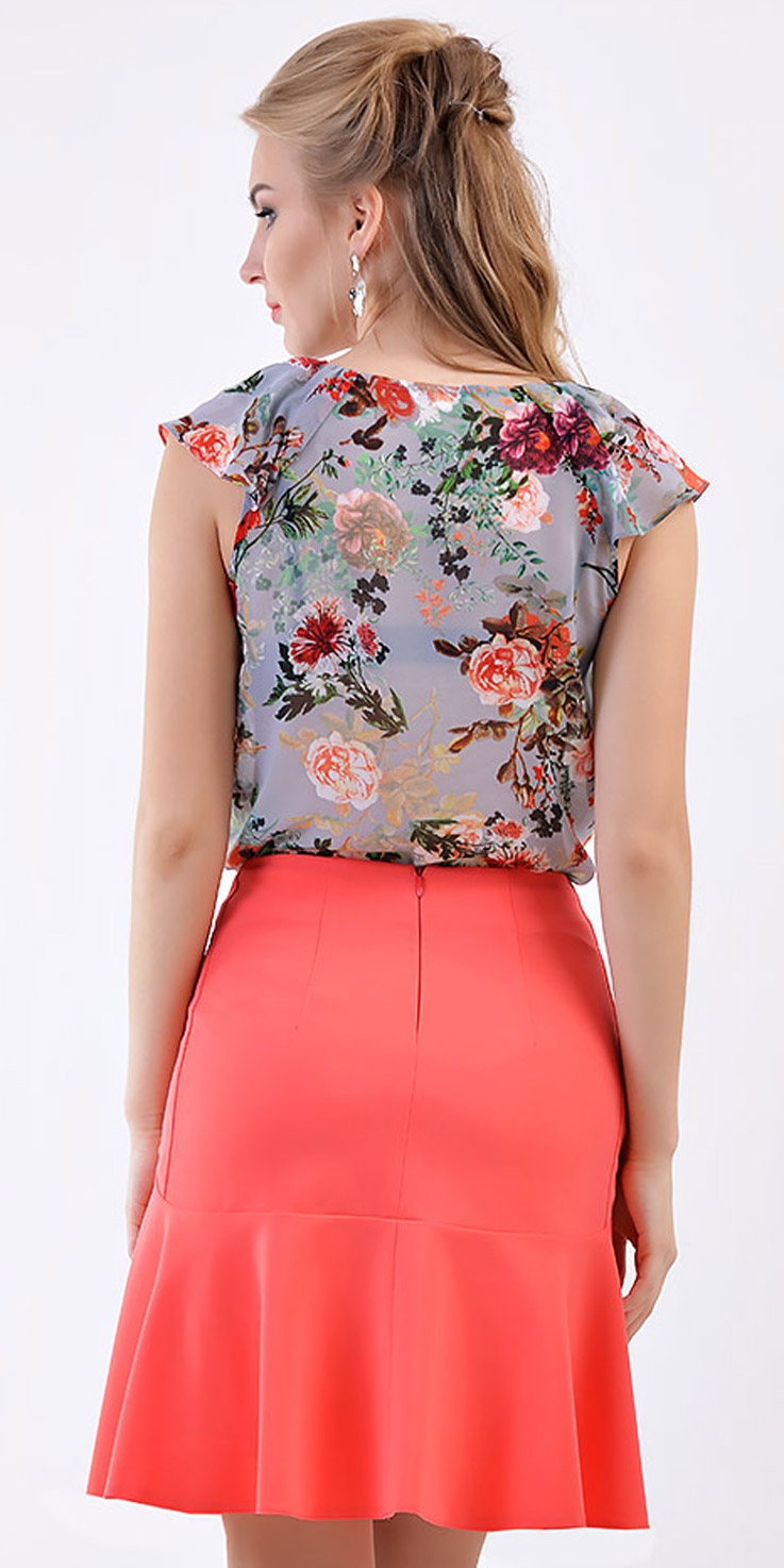 Юбка трапециевидного силуэта с фигурными рельефными швами по спинке и переду. Застежка по спинке на