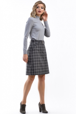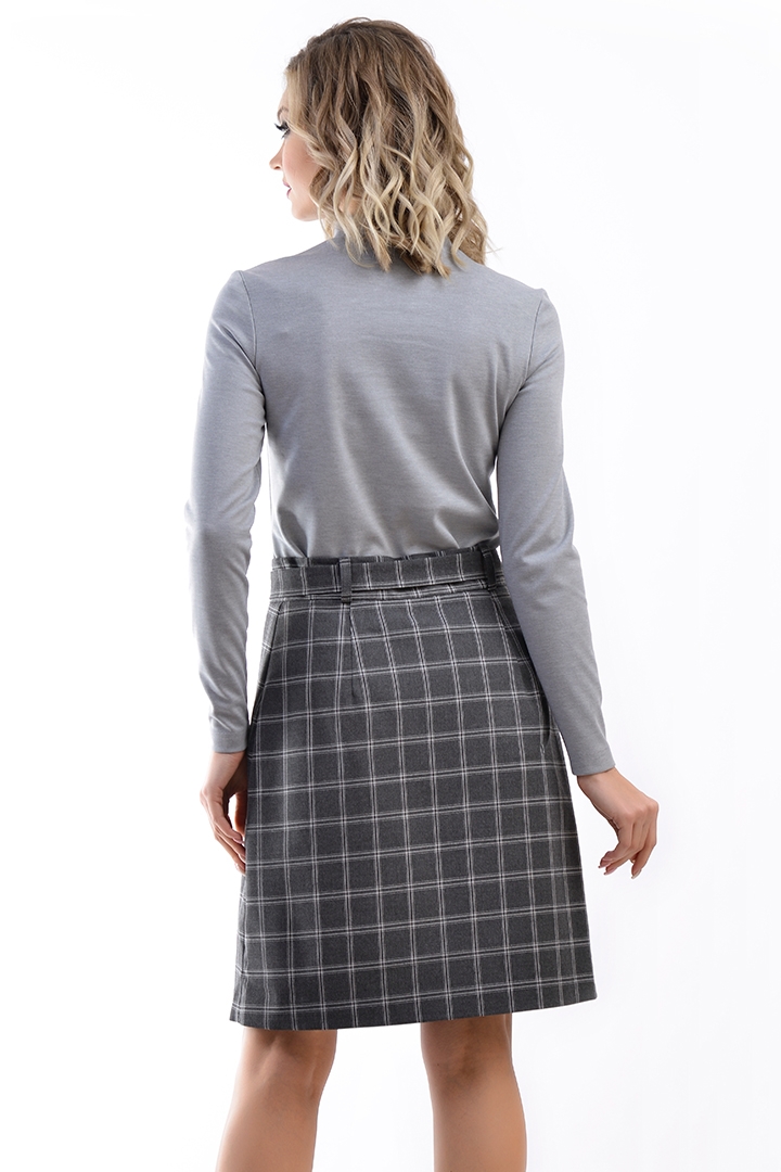 Юбка-трапеция из костюмной ткани в клетку с поясом и пряжкой. Застёжка на молнию и пуговицу по перед