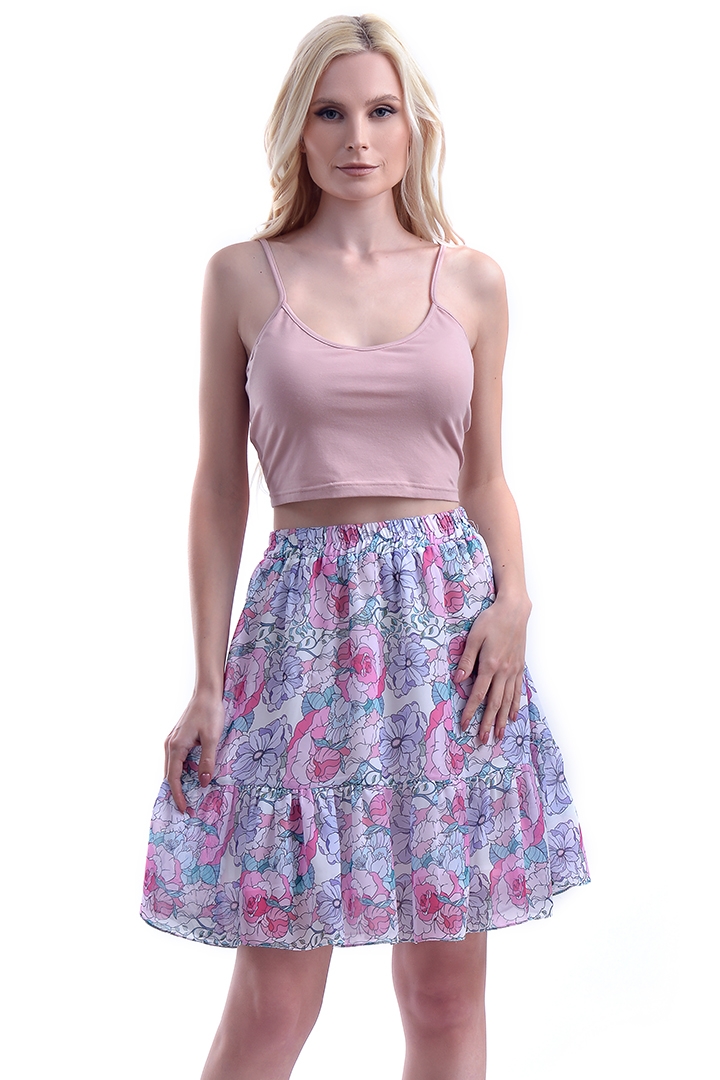 Романтическая юбка из шифоновой ткани на подкладке, Юбка на широком поясе с резинкой, по низу юбки присборенный волан. Рекомендуем носить с блузкой или топом. Отличный вариант для жаркого лета.