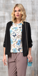 Рукава 3/4 оформлены манжетами и вертикальными патами.