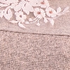 Джемпер прямого силуэта из гладкого трикотажа. Вырез овальной формы. Рукав длиной 3/4, плечо спущенное. По переду кокетка с отделкой кружевными цветами и бусинами.