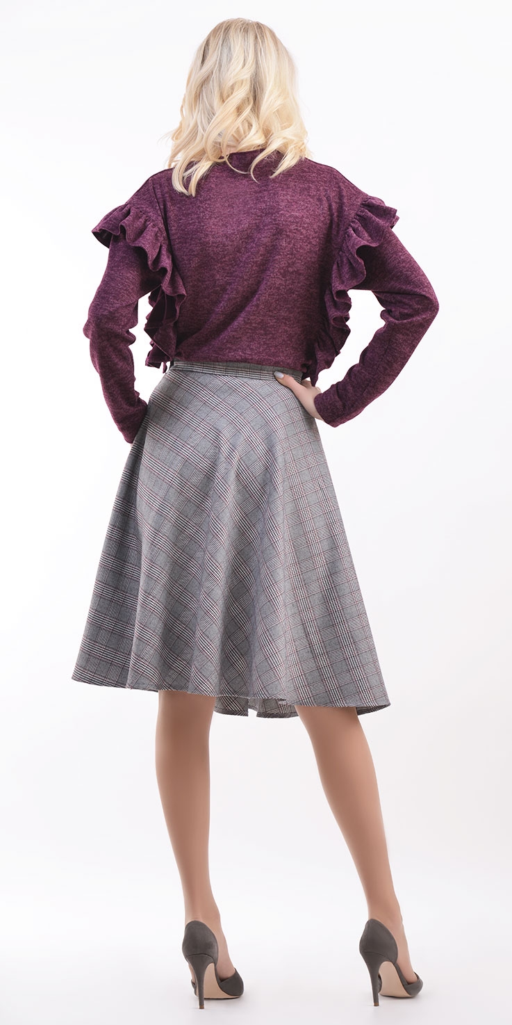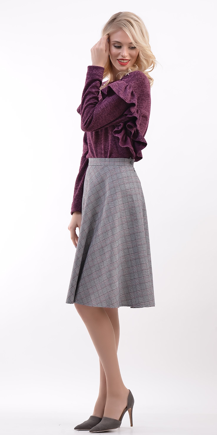 Юбка полусолнце, из костюмной ткани в клетку, на подкладке,