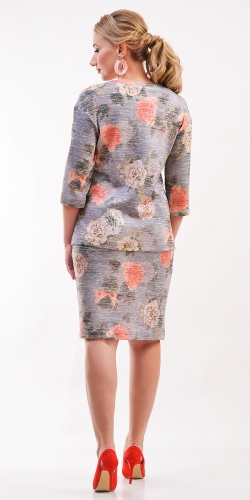 Джемпер прямого силуэта из меланжевого трикотажа с цветочным принтом. Вырез горловины округлой формы, плечо спущенное, рукав длиной 3/4. В боковых швах разрезы. Без застежки.