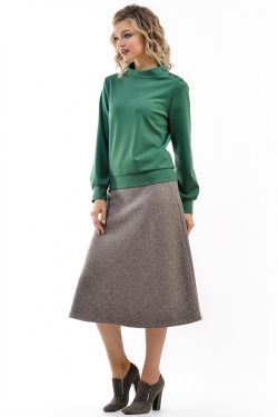 Тёплая расклешённая юбка из костюмной ткани жаккардового переплетения, длиной ниже колен. Застёжка