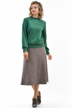Комфортный джемпер из гладкого вискозного трикотажа с длинными рукавам на манжетах. Горловина оформлена в виде стойки. Низ изделия на поясе Застежка джемпера по левому плечу и горловине на 4 декоративные пуговицы.